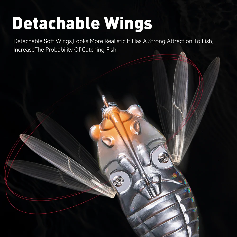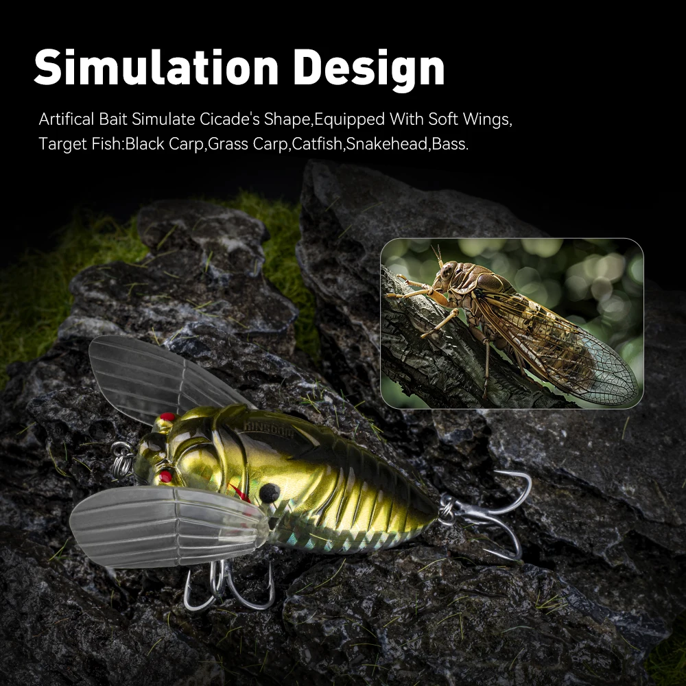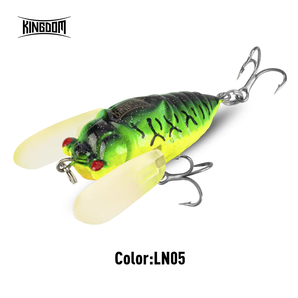 A amostra biónica tipo cigarra da marca KINGDOM é perfeita para estimular ataques à superfície. Com corpo em plástico ABS resistente e anzóis triplos 3X anti-ferrugem, esta amostra oferece uma apresentação natural e eficaz, mesmo em águas calmas. Disponível em dois tamanhos, reproduz com fidelidade o comportamento de um inseto a lutar à tona da água — irresistível para peixes como achigã ou lúcio.