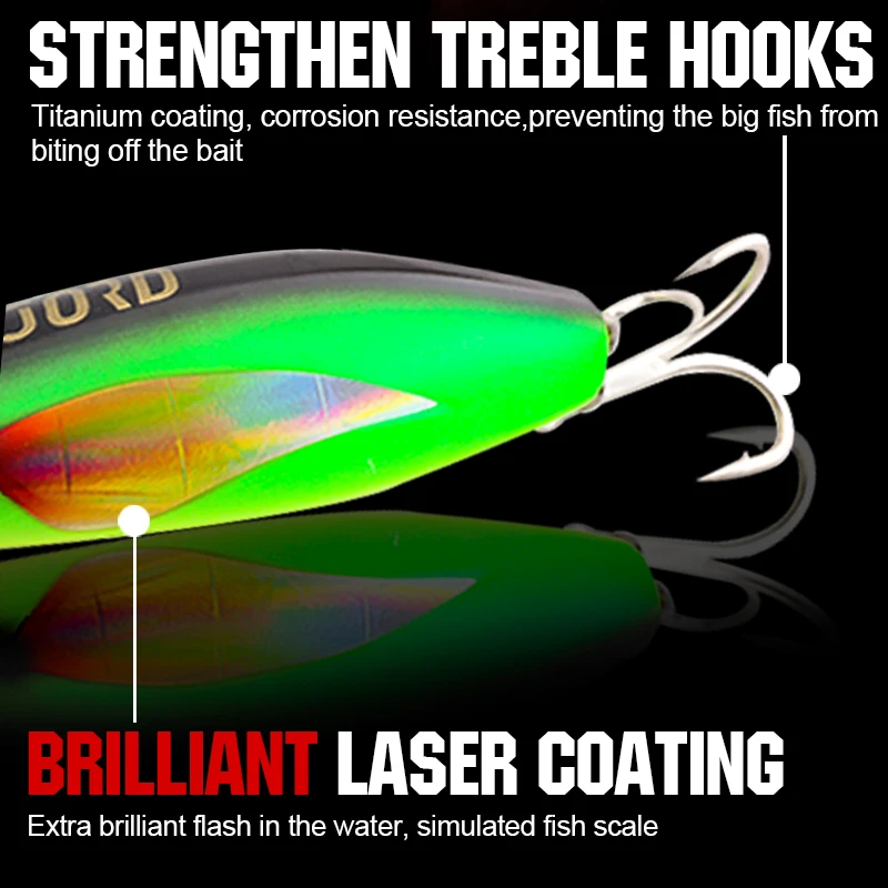 • 3 anzóis triplos ultra-resistentes: equipados com argolas reforçadas, ideais para combates exigentes.