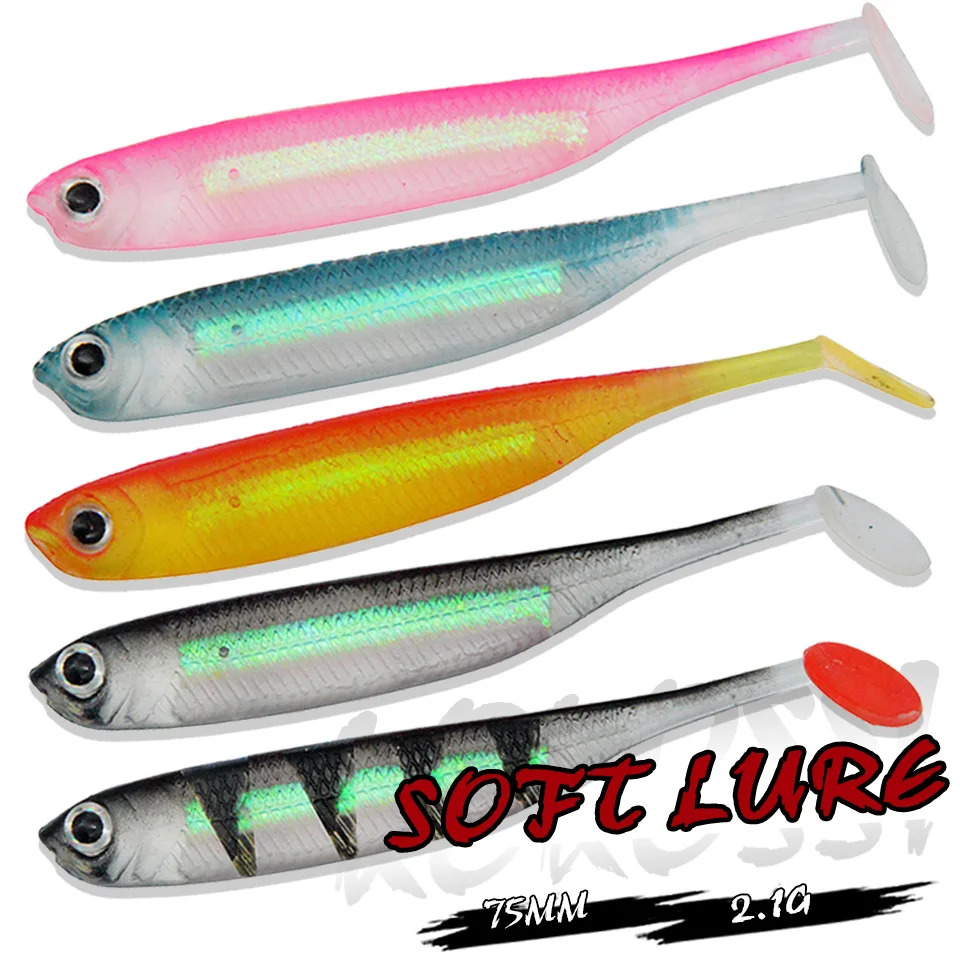 5 amostras softbait de 7.5 cm e 2.1 g em cores variadas
