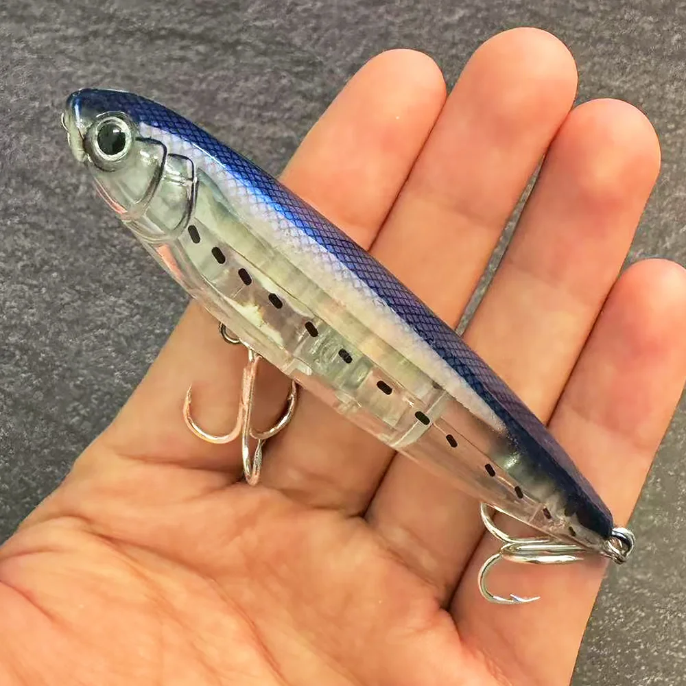 Com 10 cm e 17,5 g, apresenta um equilíbrio interessante entre alcance de lançamento, estabilidade e presença na água. O sistema sonoro interno ajuda a chamar peixe à distância, enquanto o perfil alongado e o acabamento tipo peixe-forragem reforçam o apelo visual. É uma amostra indicada para quem quer cobrir água, procurar peixe activo e explorar bem zonas de caça à superfície.