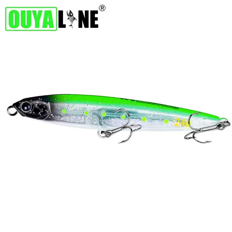 A Ouyaline B1110 é uma amostra rígida do tipo pencil, desenvolvida para pescas em que o lançamento à distância, a leitura da água e a versatilidade de trabalho fazem diferença. O corpo estreito e alongado, visível também na imagem do produto, confirma uma amostra pensada para trabalhar sem barbela, com liberdade de animação e boa resposta a recolhas lineares, twitchs e variações de ritmo.