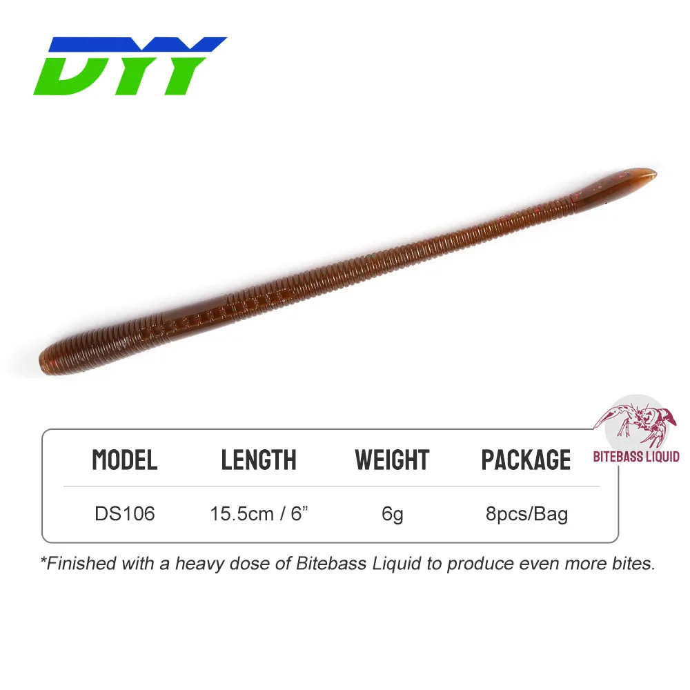 A softbait DYY estilo “minhoca Senko” foi desenhada para maximizar resultados em pesca finesse. Com flutuabilidade elevada na extremidade da cauda, proporciona um movimento subtil e eficaz, perfeito para dias de pesca difíceis ou zonas com muita pressão de pesca.