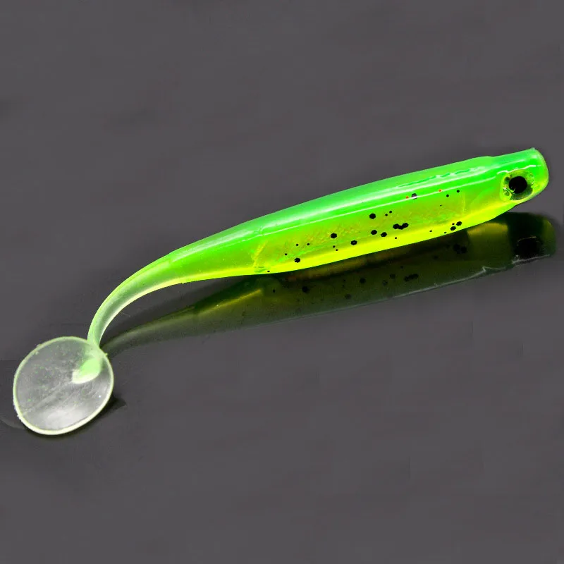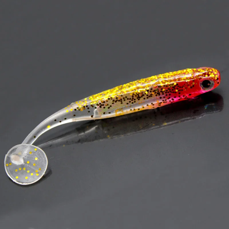 O conjunto de 2 amostras softbait T-Tail combina flexibilidade e realismo para pescarias eficazes em diversas condições.