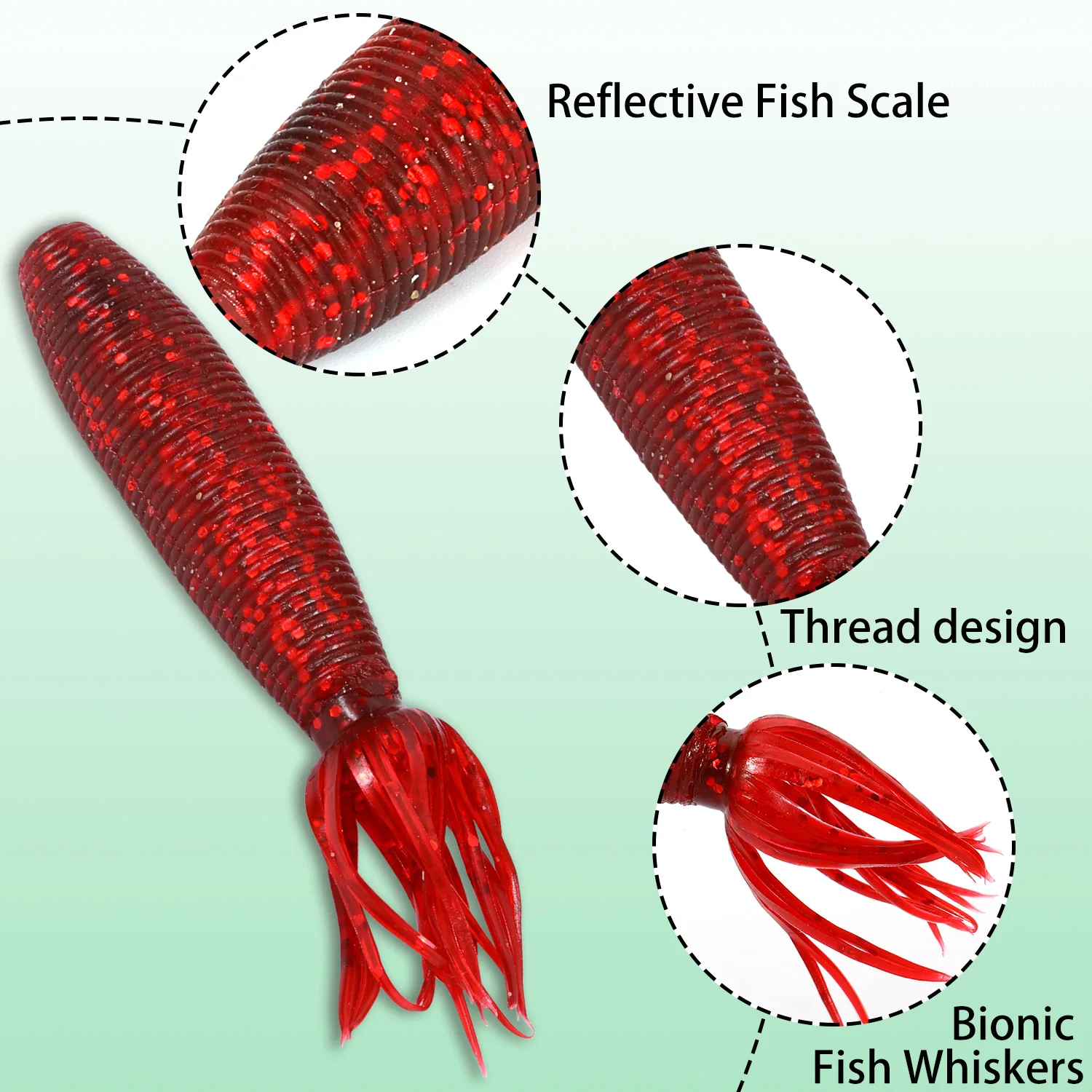 As amostras softbait Sougayilang Swimbait são feitas em silicone flexível de alta qualidade, proporcionando um movimento natural e vibrante durante a recuperação. A cauda tipo paddle cria vibrações intensas na água, estimulando a resposta predatória dos peixes. São versáteis, podendo ser usadas em técnicas de jigging ou montagens tradicionais com cabeça chumbada.