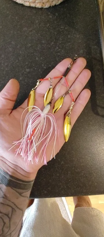 - 1x Amostra Spinnerbait 23g Tandem Spin Willow com saia vibrante.