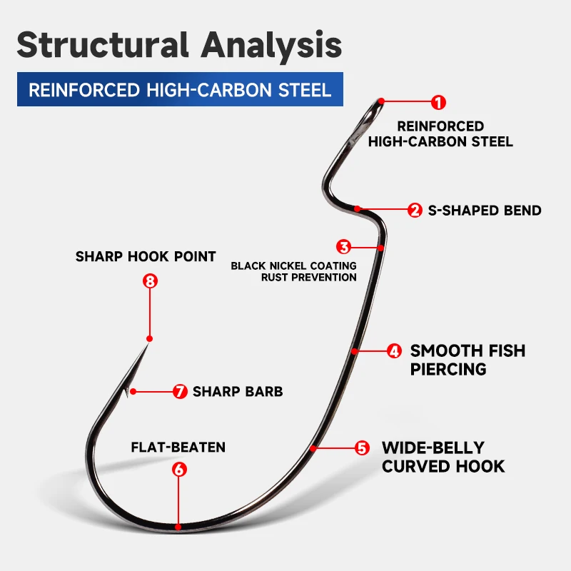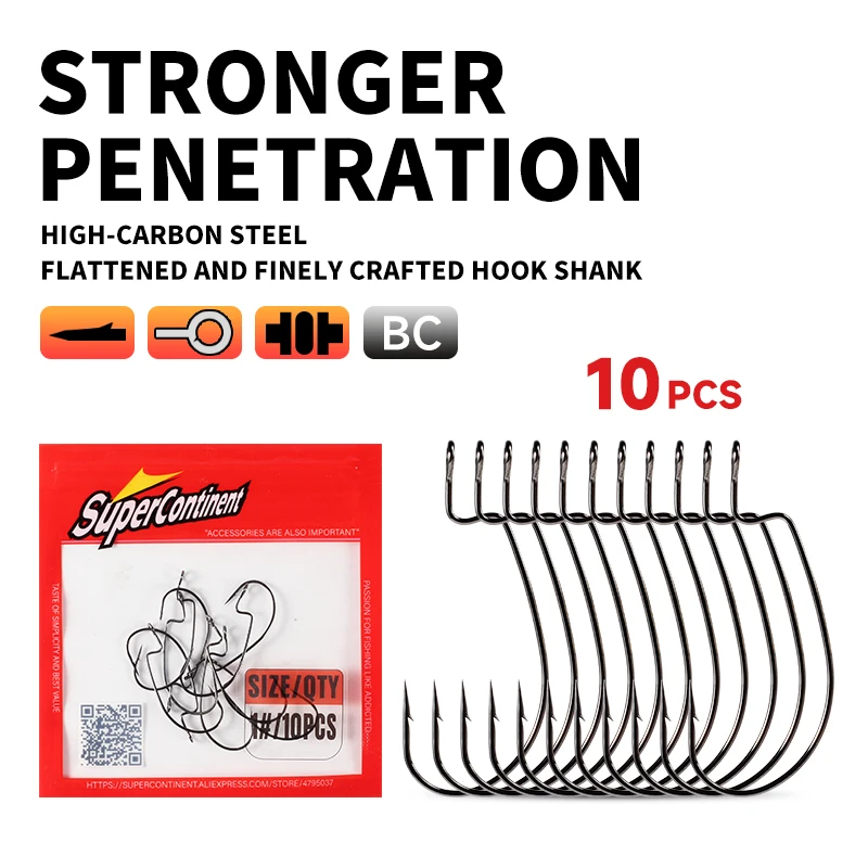 Os anzóis offset da Supercontinent foram desenvolvidos para pescadores exigentes que procuram precisão e resistência nas suas montagens com amostras soft. Fabricados em aço carbono de alta qualidade, combinam força, penetração rápida e design ideal para iscos em forma de minhoca ou criatura.