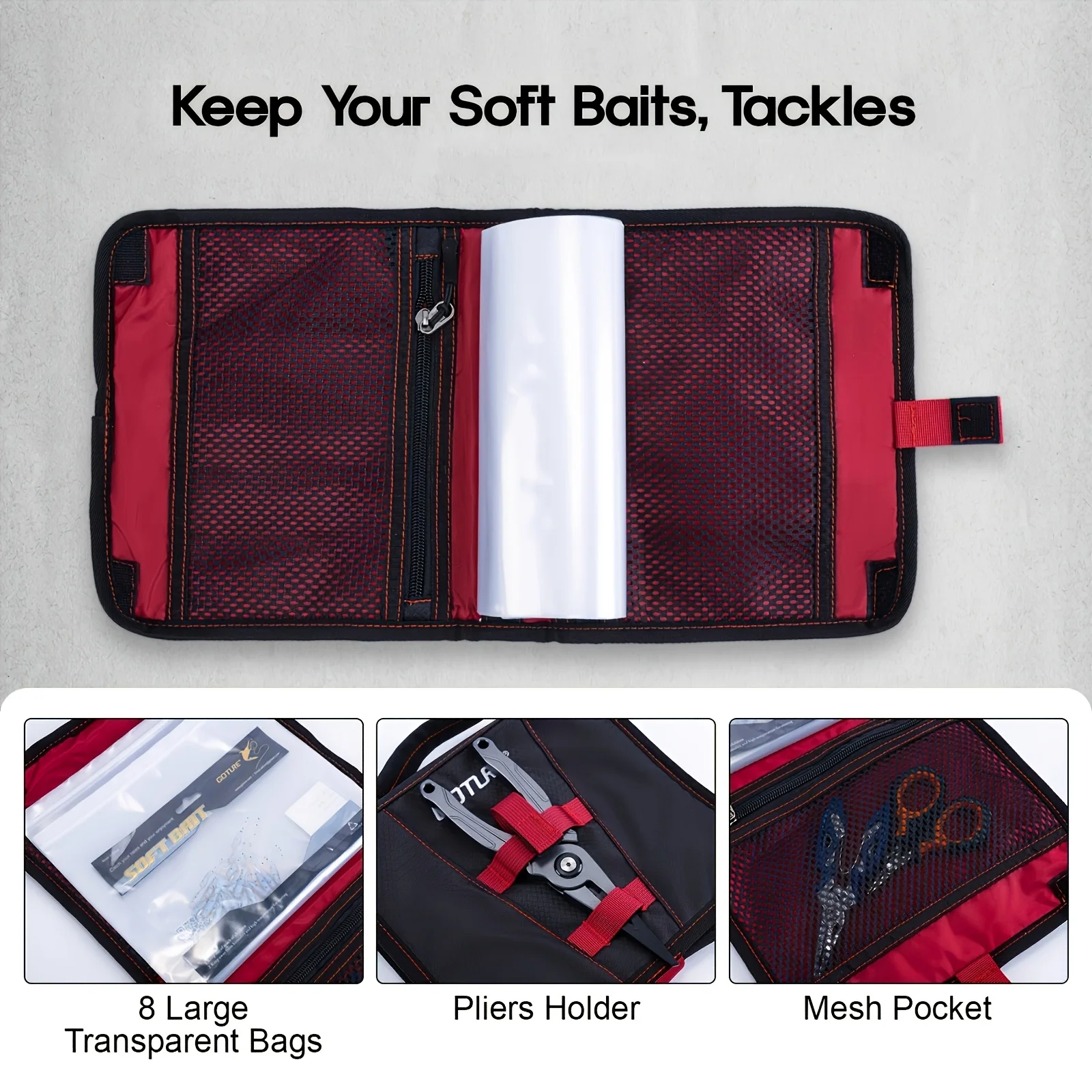 O grande ponto forte deste modelo está nas 8 saquetas interiores incluídas, que ajudam a dividir o material por tipo de amostra, peso, cor ou montagem. O fecho com correr torna o conjunto mais prático no transporte e ajuda a proteger melhor o conteúdo. É uma opção especialmente útil para quem pesca com vinis e gosta de ter tudo preparado e fácil de encontrar no terreno.