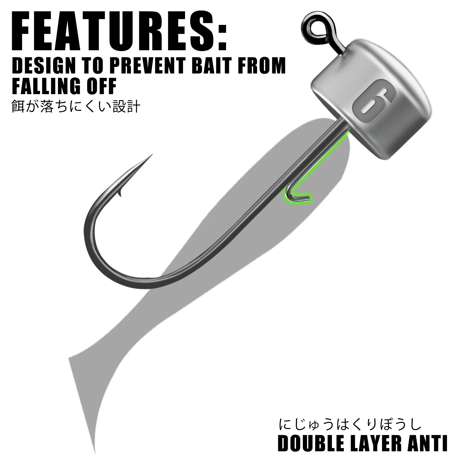 Estas cabeças chumbadas tipo Ned Rig da SAMOLLA oferecem uma montagem altamente eficaz para pesca de precisão. A base plana permite que a amostra fique na vertical mesmo em repouso, imitando uma presa estática no fundo. O anzol de aço carbono garante resistência e penetração rápida, sendo ideal para técnicas finesse com minhocas ou criaturas soft.