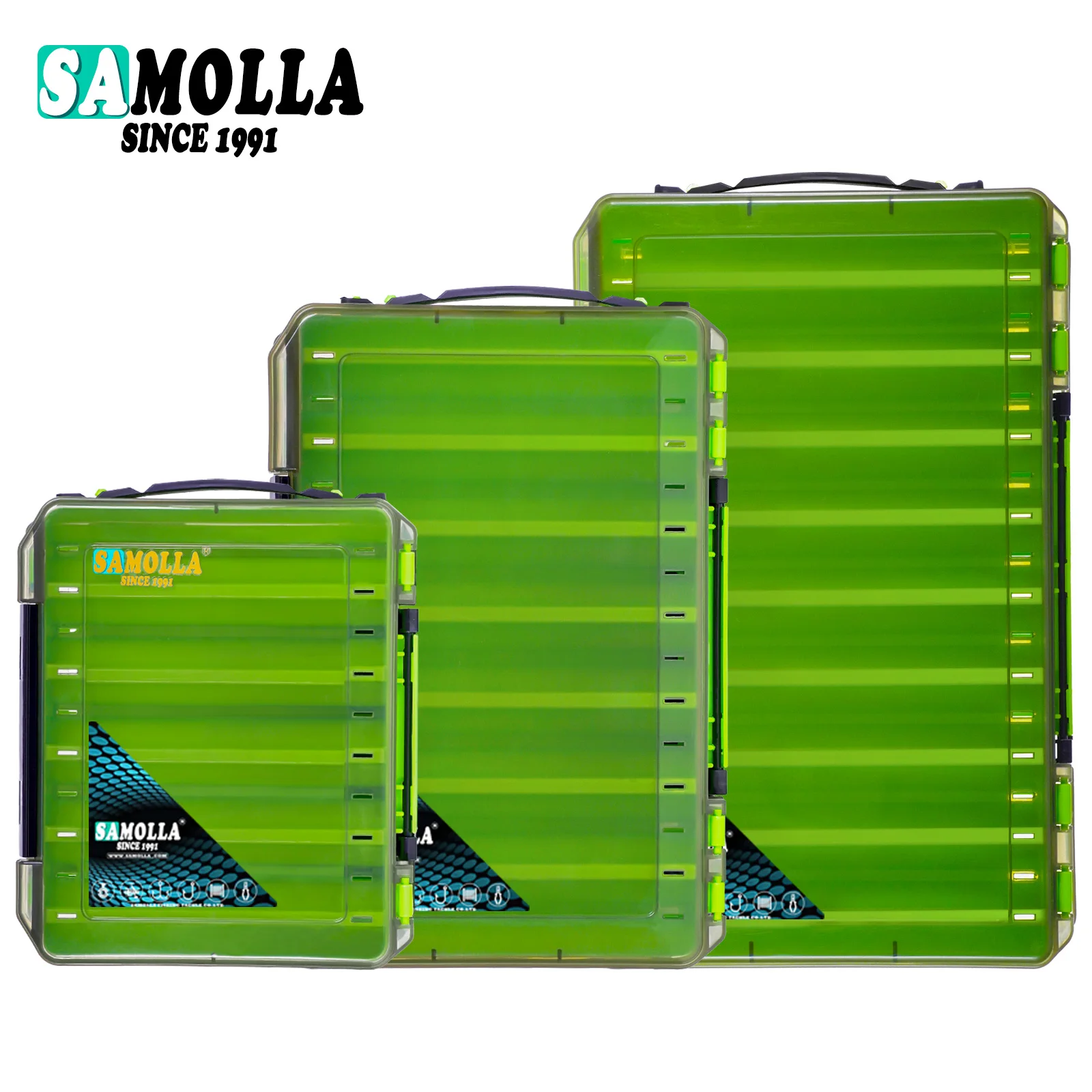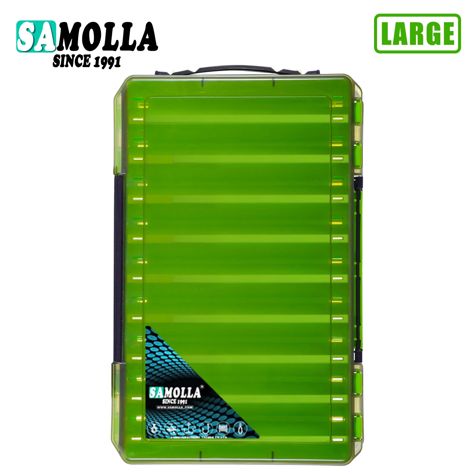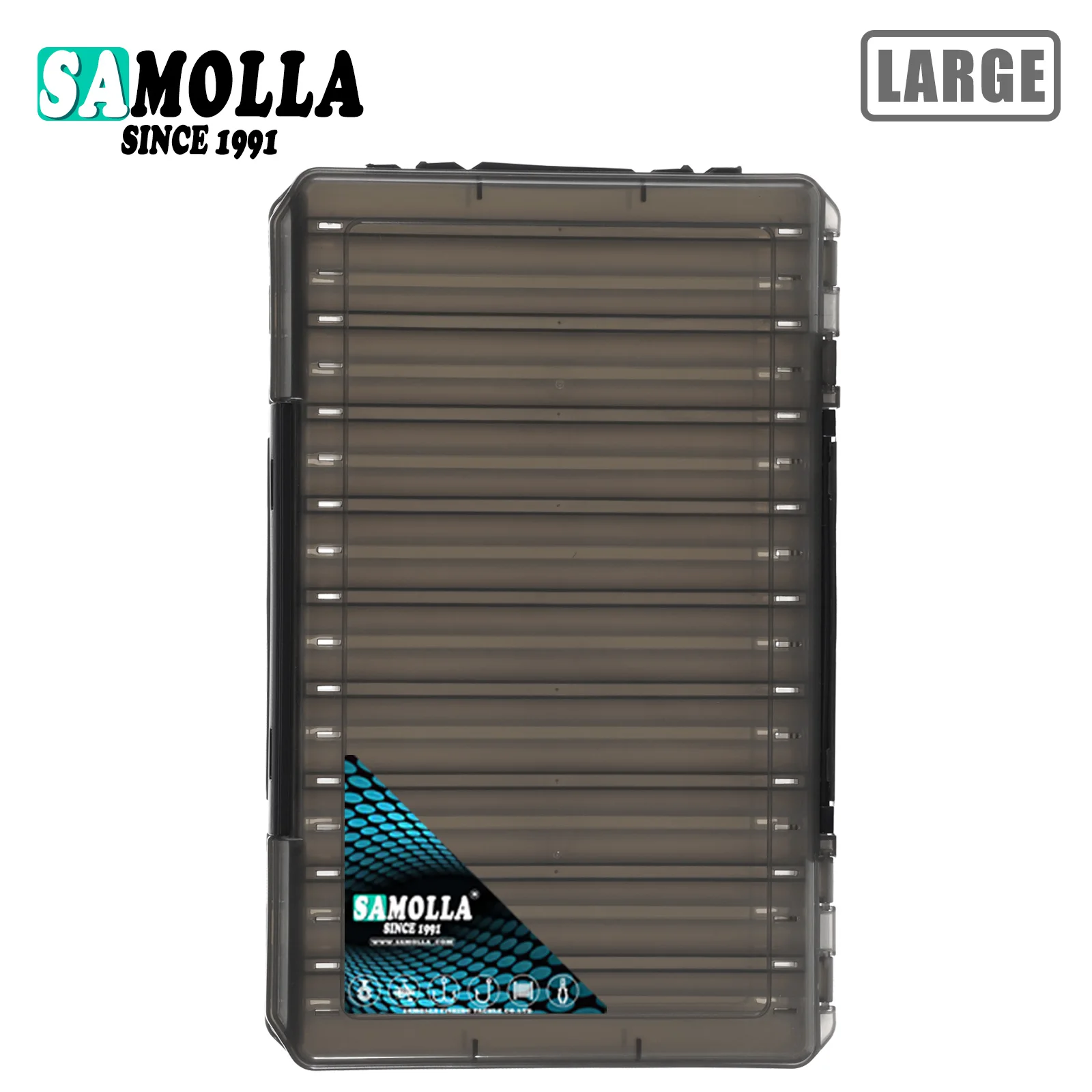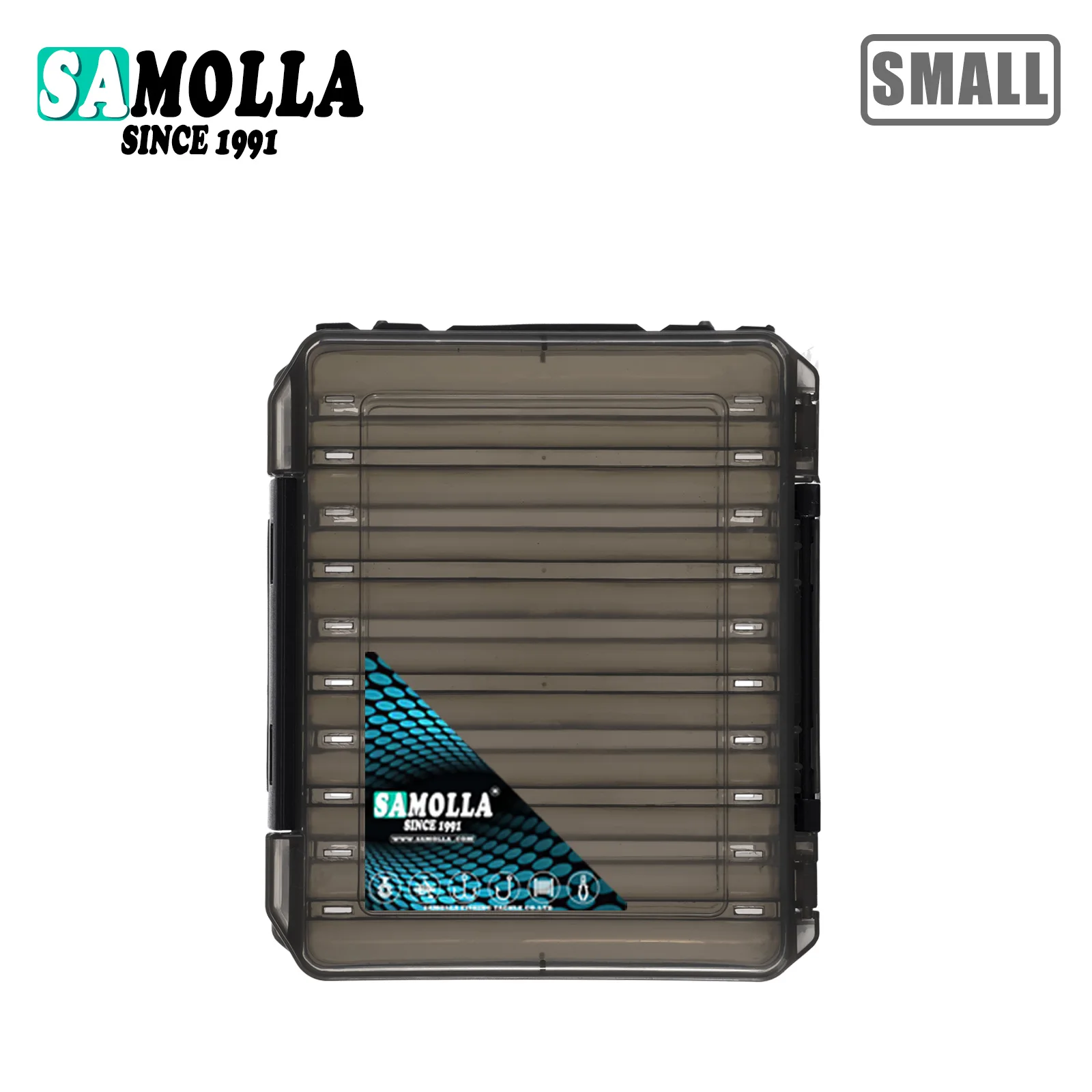 Organize todas as suas amostras e acessórios num só lugar com esta caixa dupla face da SAMOLLA. Leve, prática e ajustável, é perfeita para levar tudo o que precisa para uma pescaria bem-sucedida.