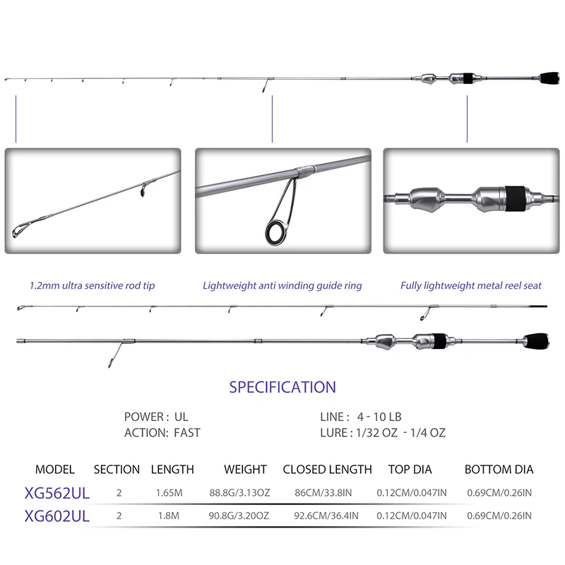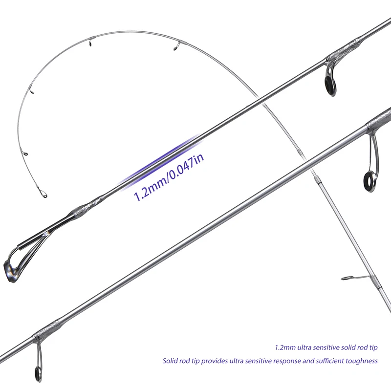 Com acção rápida e uma resposta suave, enquadra-se bem no trabalho de pequenas amostras, colheres, vinis leves e outras montagens delicadas. O cabo com pega antiderrapante ajuda no conforto e no controlo, enquanto o formato compacto das versões de 1,65 m e 1,80 m favorece a utilização em ribeiras, margens com vegetação e zonas de acesso mais apertado.