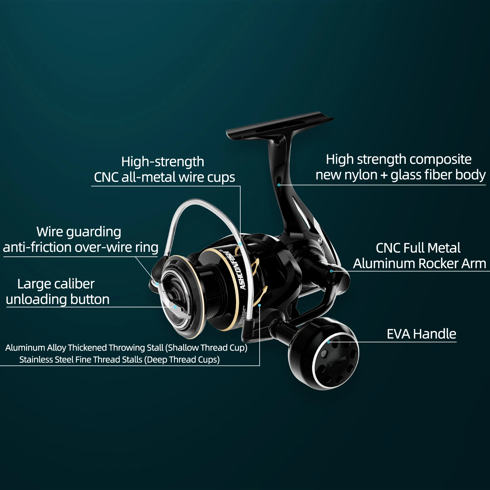 O carreto spinning Ashconfish DF é uma excelente escolha para pescadores que procuram durabilidade e desempenho em diferentes cenários. Com 8 rolamentos, sistema anti-reverso e drag máximo até 8kg, este carreto garante suavidade mesmo sob carga. A bobine em alumínio CNC oferece resistência à deformação e a manivela pode ser facilmente adaptada para destros ou esquerdinos. Disponível em versões de bobine funda ou rasa, adapta-se a várias técnicas e espécies.