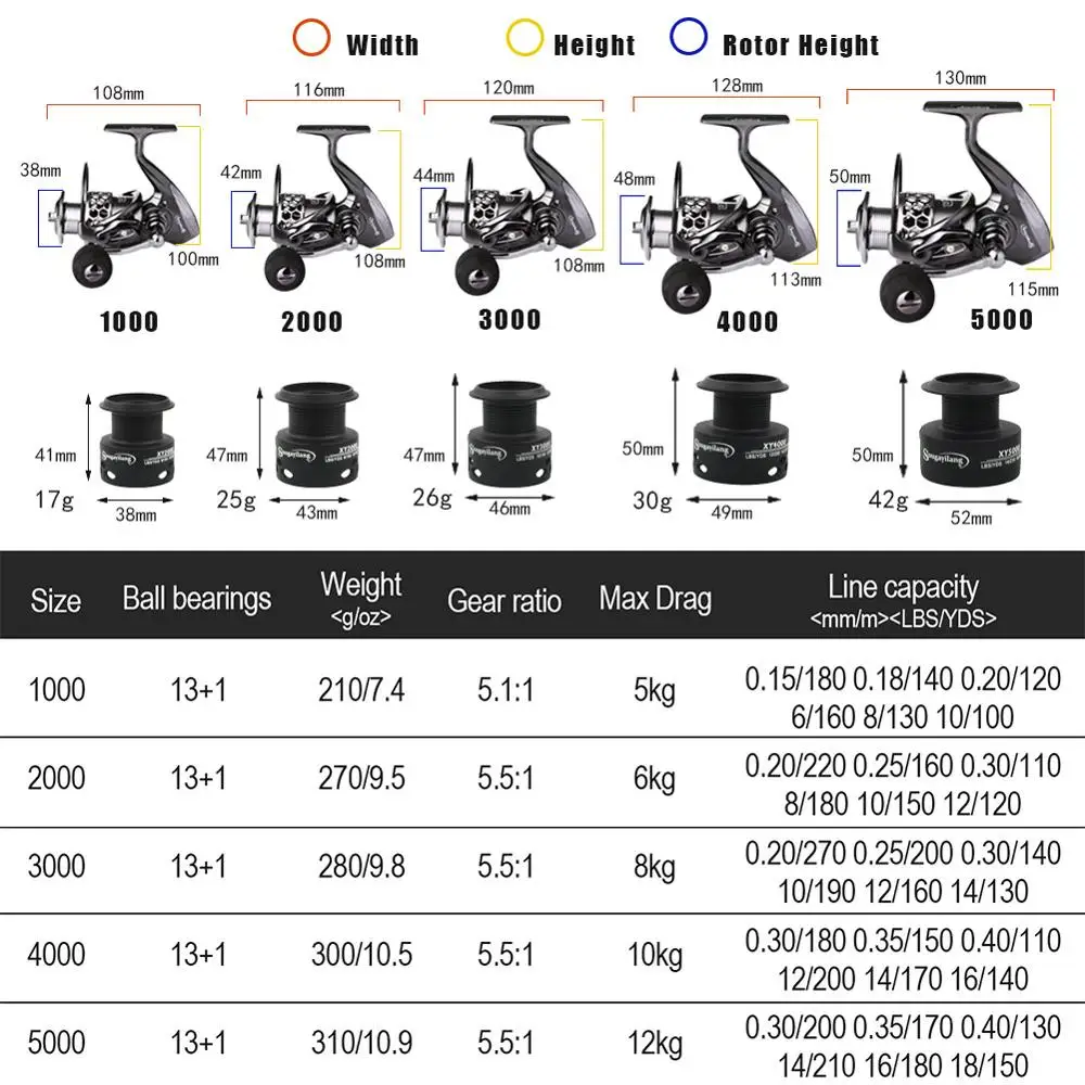 O Sougayilang XY1000–5000 é um carreto de spinning de alto desempenho, construído em liga de alumínio e equipado com 13+1 rolamentos selados para um funcionamento fluido e duradouro.