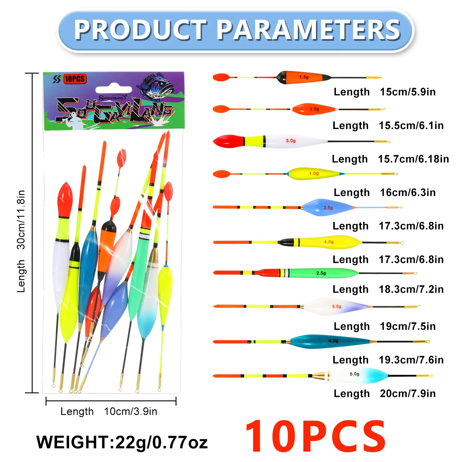Conjunto 10 Bóias Sougayilang 1.5 g–5 g em Madeira Barguzinsky