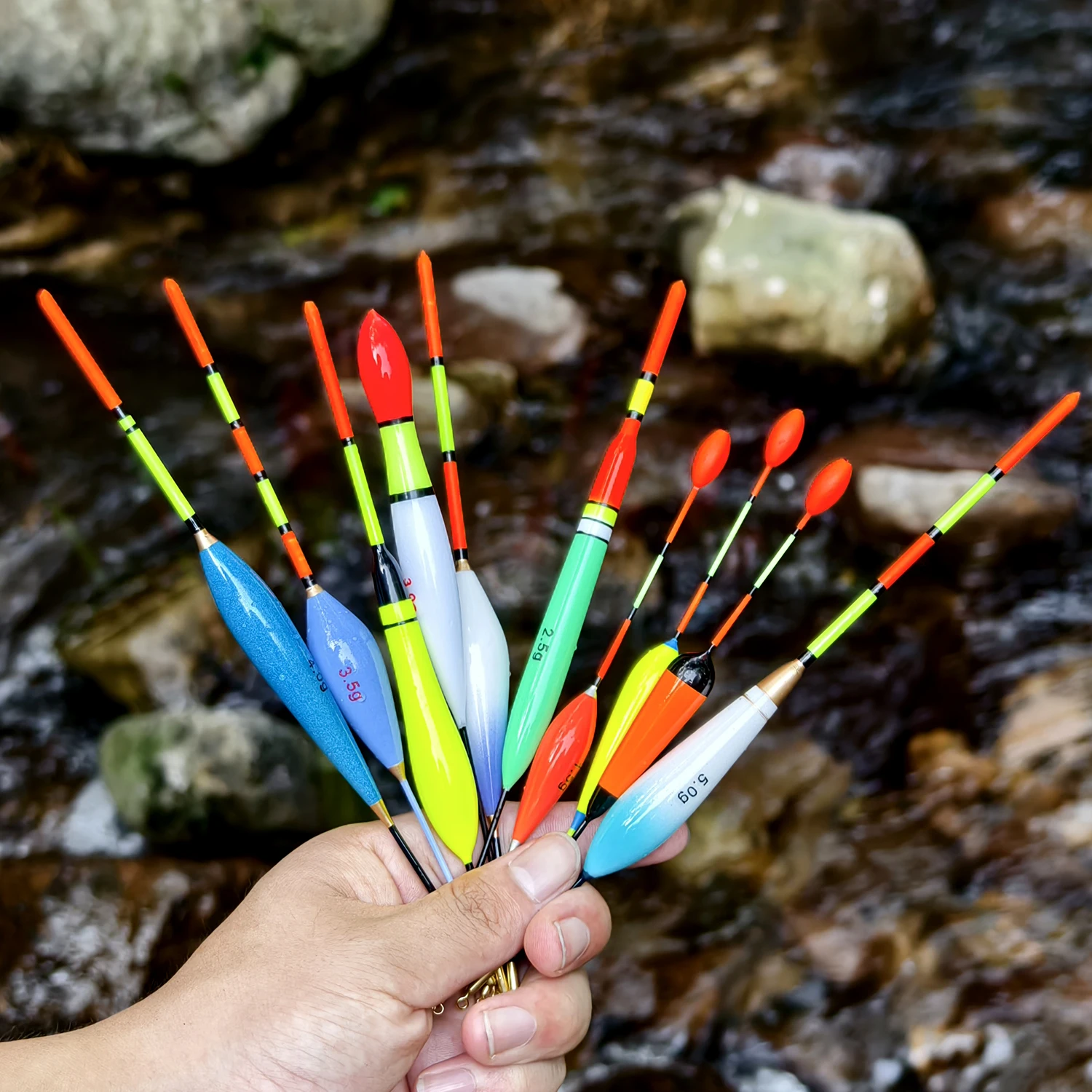Leves, sensíveis e coloridas, as bóias Sougayilang em madeira Barguzinsky oferecem excelente estabilidade e afundamento rápido. O conjunto de 10 unidades em várias cores é ideal para ajustar a profundidade e aumentar a precisão nas capturas em lagoas e rios calmos.