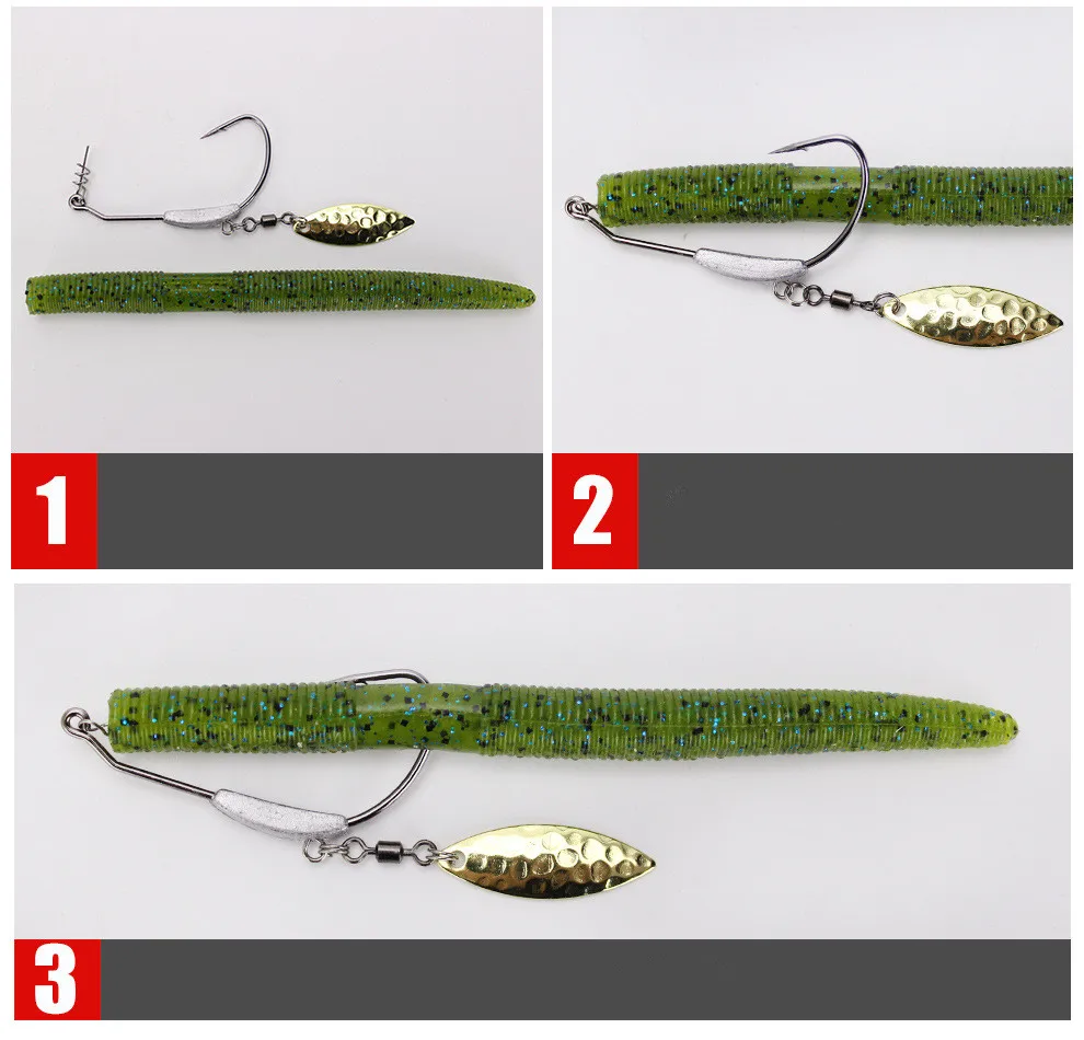 - Montagens compatíveis: cabeça plumbada, Texas rig e anzol offset