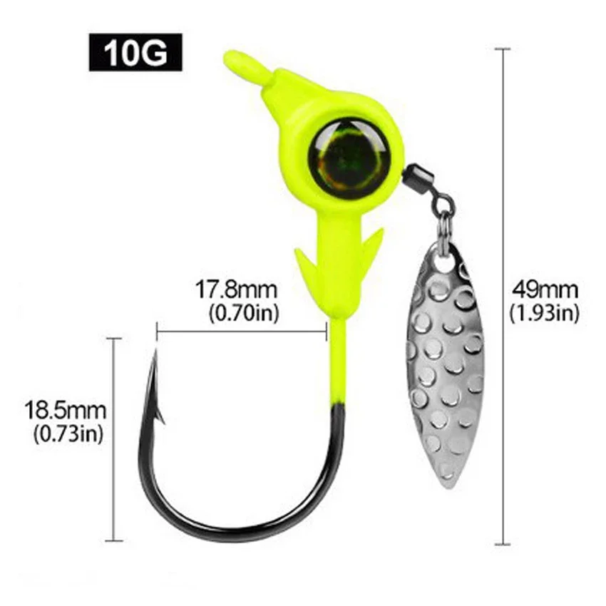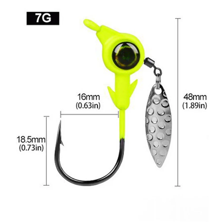 Estas cabeças plumbadas com colher foram concebidas para pescadores que usam vinis e querem juntar à montagem um elemento extra de vibração e reflexo. O anzol integrado permite montar shads, worms e outros vinis de forma simples, enquanto a colher giratória trabalha durante a recuperação e ajuda a tornar a apresentação mais apelativa.