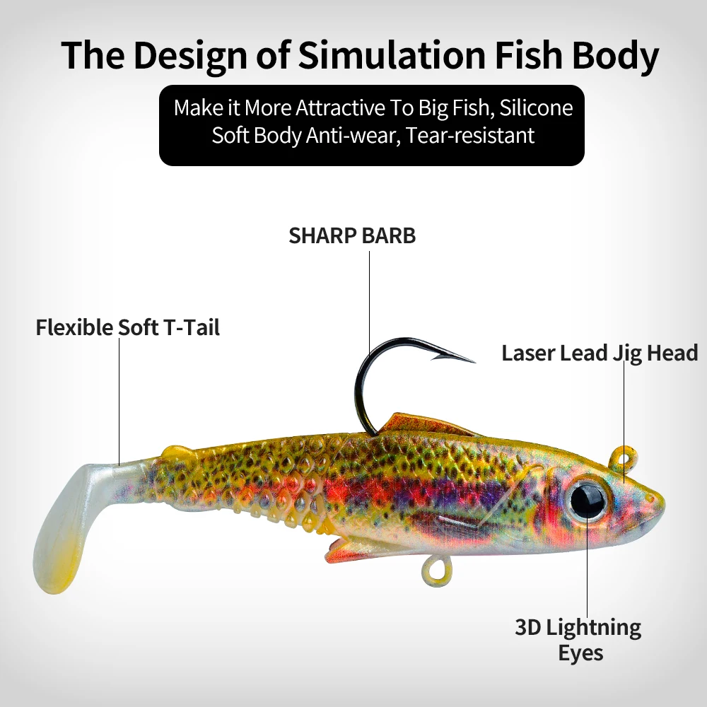 Este conjunto da Proberos inclui 5 vinis T-Tail pensados para predadores que respondem bem a uma natação marcada, com boa vibração e leitura na água. O corpo robusto e a cauda em T tornam estas amostras muito interessantes para trabalhar em recolha linear, dente de serra ou junto ao fundo. É uma solução versátil para quem procura vinis consistentes para água doce e para spinning de mar com montagens adequadas.