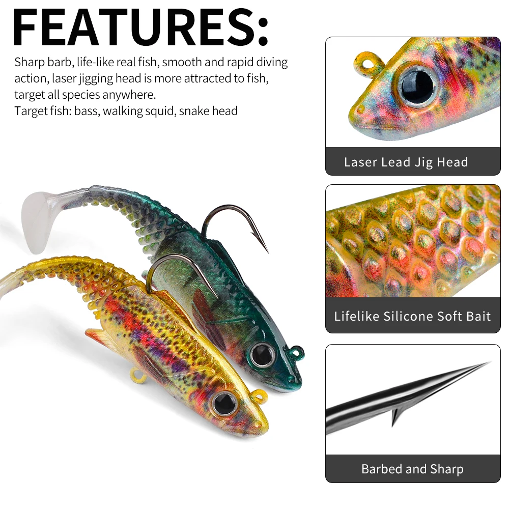 • Montagens compatíveis: cabeça plumbada, anzol plumbado e outras montagens com softbaits