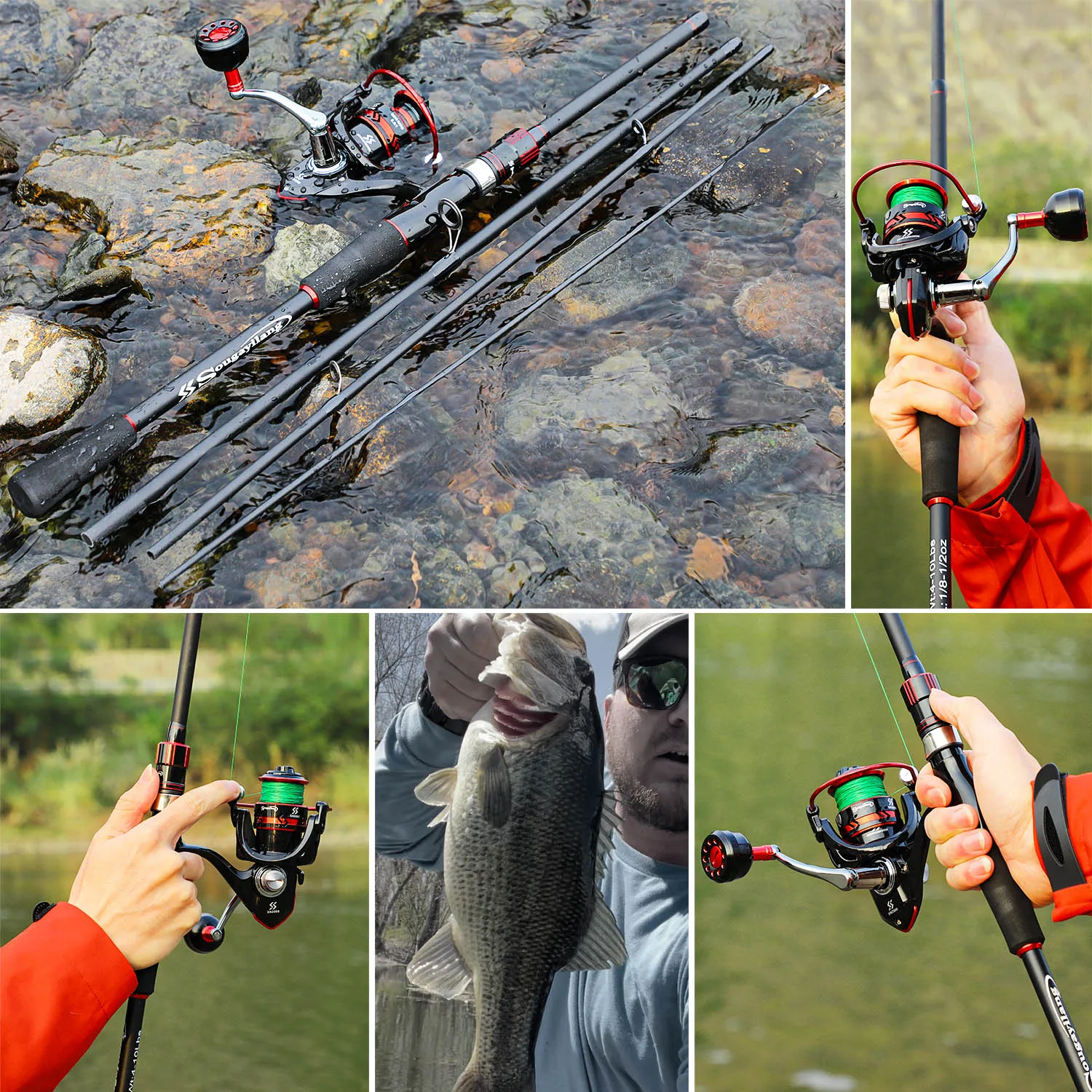 O conjunto de pesca Sougayilang combina uma cana de fibra de carbono ultraleve com um carreto de alto desempenho, formando um kit completo e fiável para pescadores em movimento. A cana, composta por 4 secções, é fácil de transportar e adequada para várias situações, desde rios e barragens até pesca costeira. O carreto incluído apresenta rácio de engrenagem 5.0:1 e está disponível nos tamanhos 2000 a 4000, permitindo lançamentos suaves e recuperação eficiente.