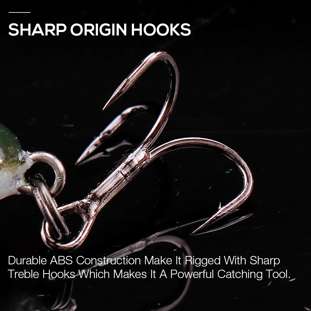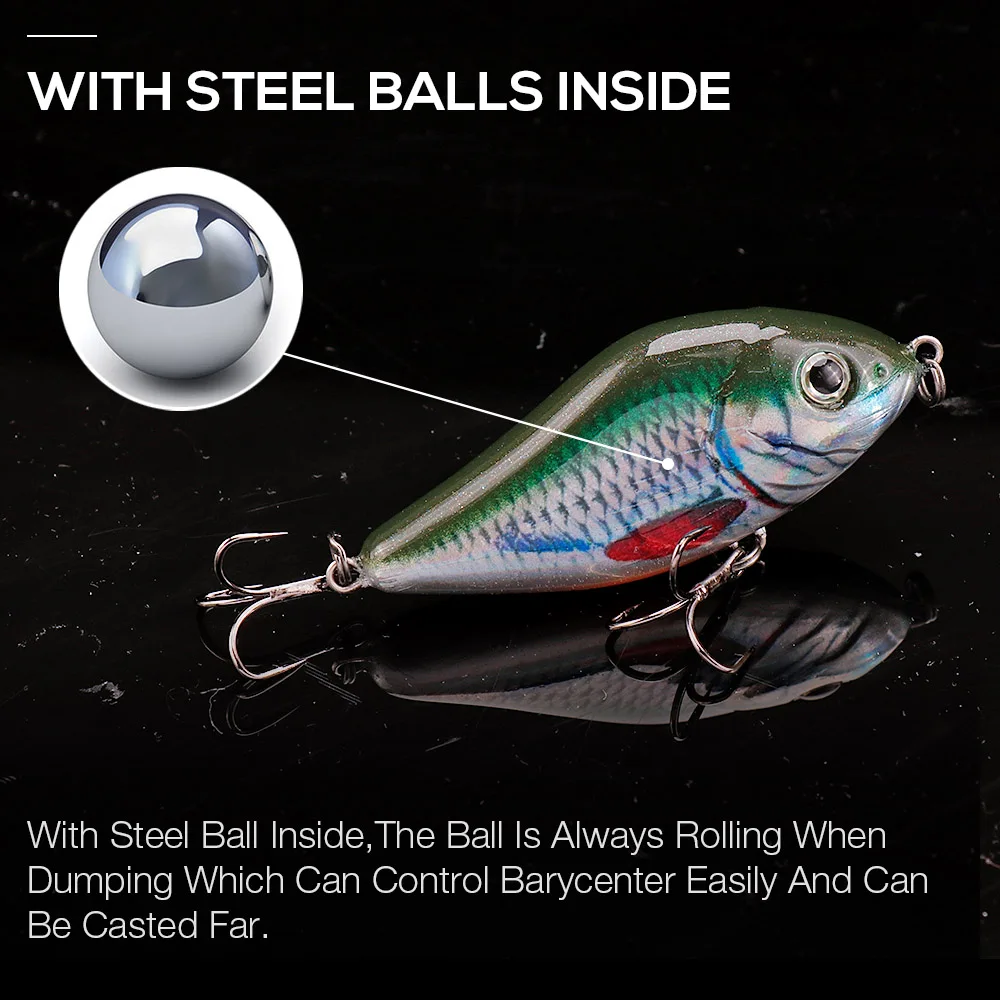 A presença de esferas internas ajuda no equilíbrio e acrescenta efeito sonoro durante a animação, reforçando o apelo da amostra em água turva, profundidade intermédia ou dias em que o peixe reage melhor a estímulos mais marcados. O corpo em ABS, os olhos 3D e as duas fateixas completam uma amostra pensada para uso regular e pesca mais agressiva a predadores.