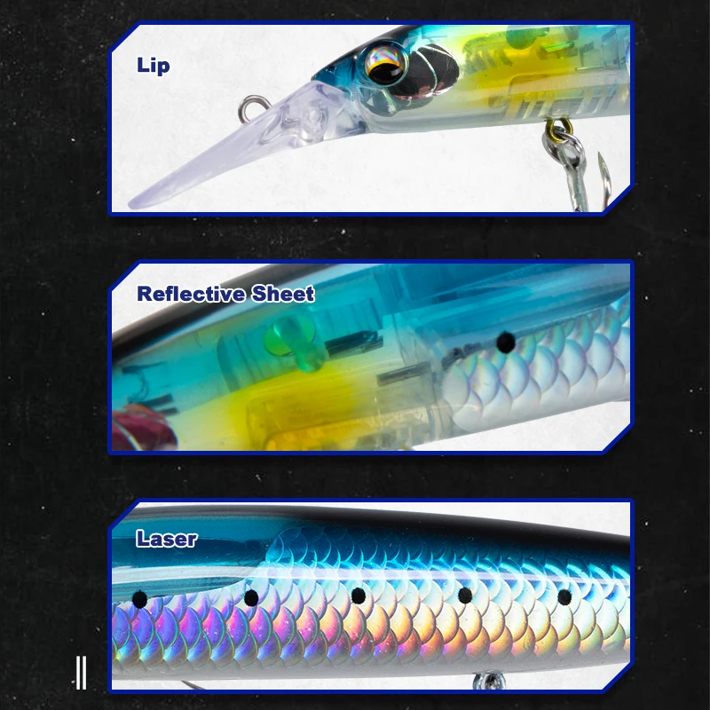 Esta amostra faz muito sentido para pesca ao robalo, lúcio, achigã e lucioperca, sobretudo em zonas onde seja importante lançar longe e manter uma amostra com boa presença em meia água. Resulta bem em estuários, canais, barragens, margens de pedra, zonas de costa e locais com alguma profundidade próxima, podendo também ser útil em embarcada ligeira. Pode ser trabalhada com recolha linear, twitchs, jerkadas secas e pausas, ajustando o ritmo à resposta do peixe. É uma amostra interessante para quem procura um minnow maior, com perfil de peixe-forragem e vocação clara para predadores mais agressivos.