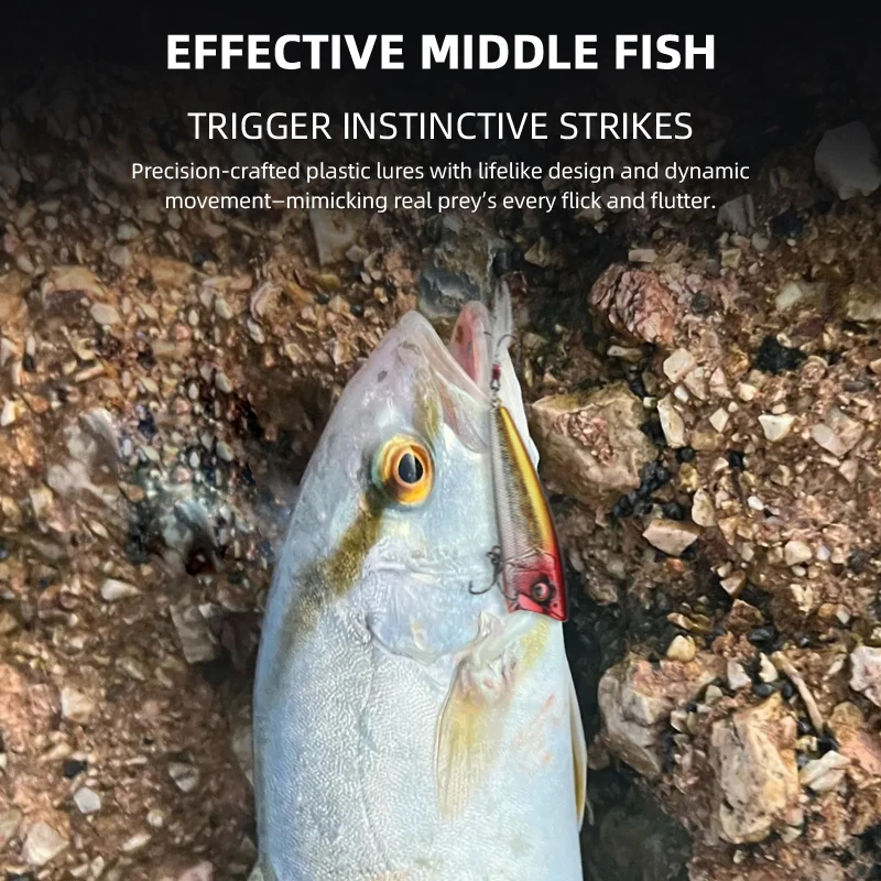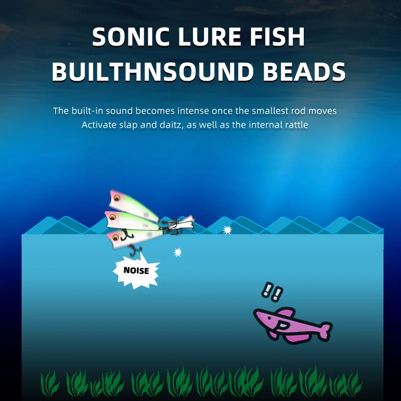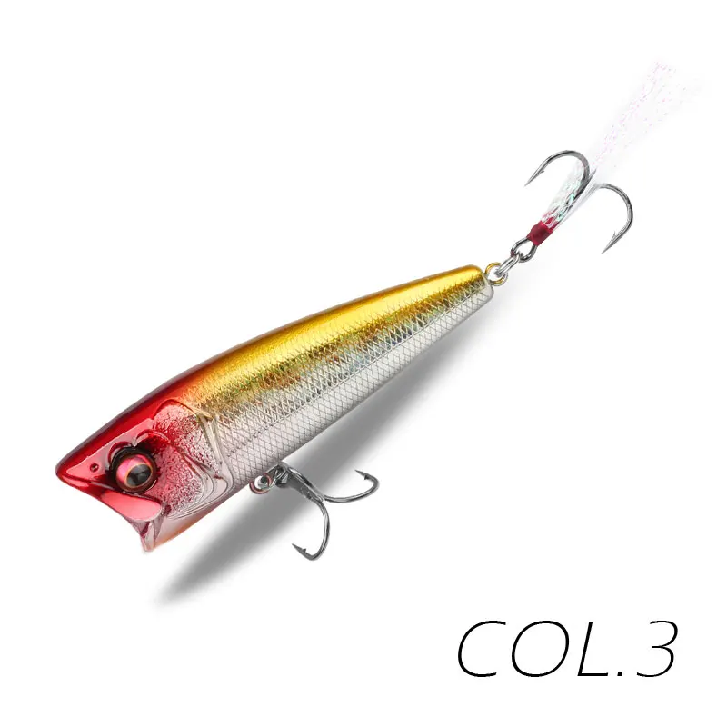 Com 70 mm e 10,6 g, apresenta um formato equilibrado para lançar bem e cobrir água com facilidade. O sistema sonoro interno ajuda a chamar peixe à distância, enquanto a fateixa traseira com penas acrescenta apelo visual nas pausas. É uma amostra muito válida para pesca de predadores activos em superfície, tanto em água doce como em spinning ligeiro no mar.