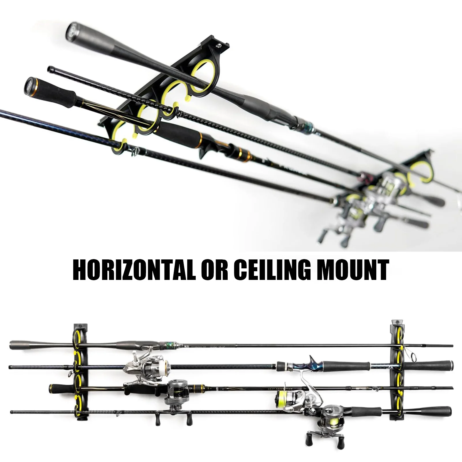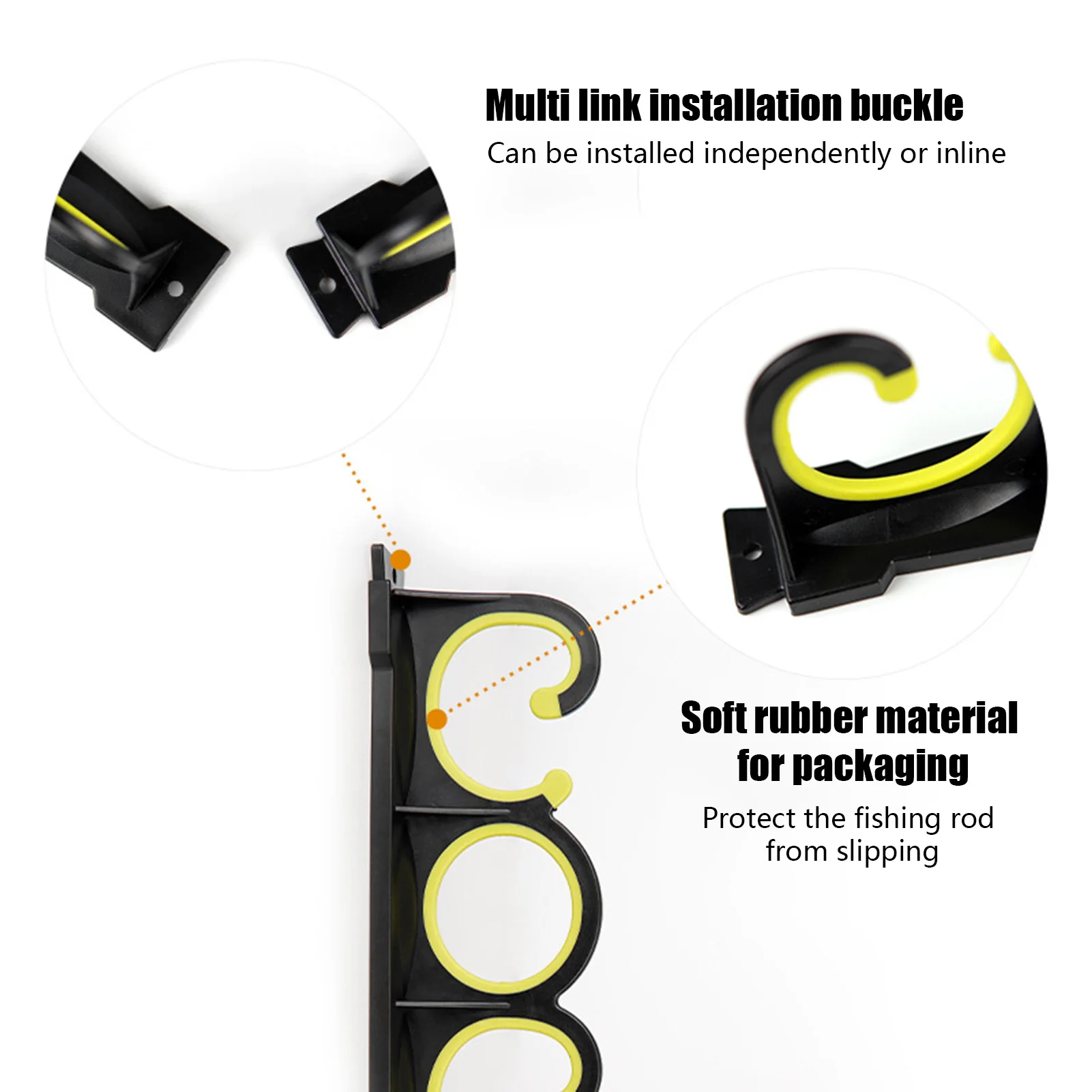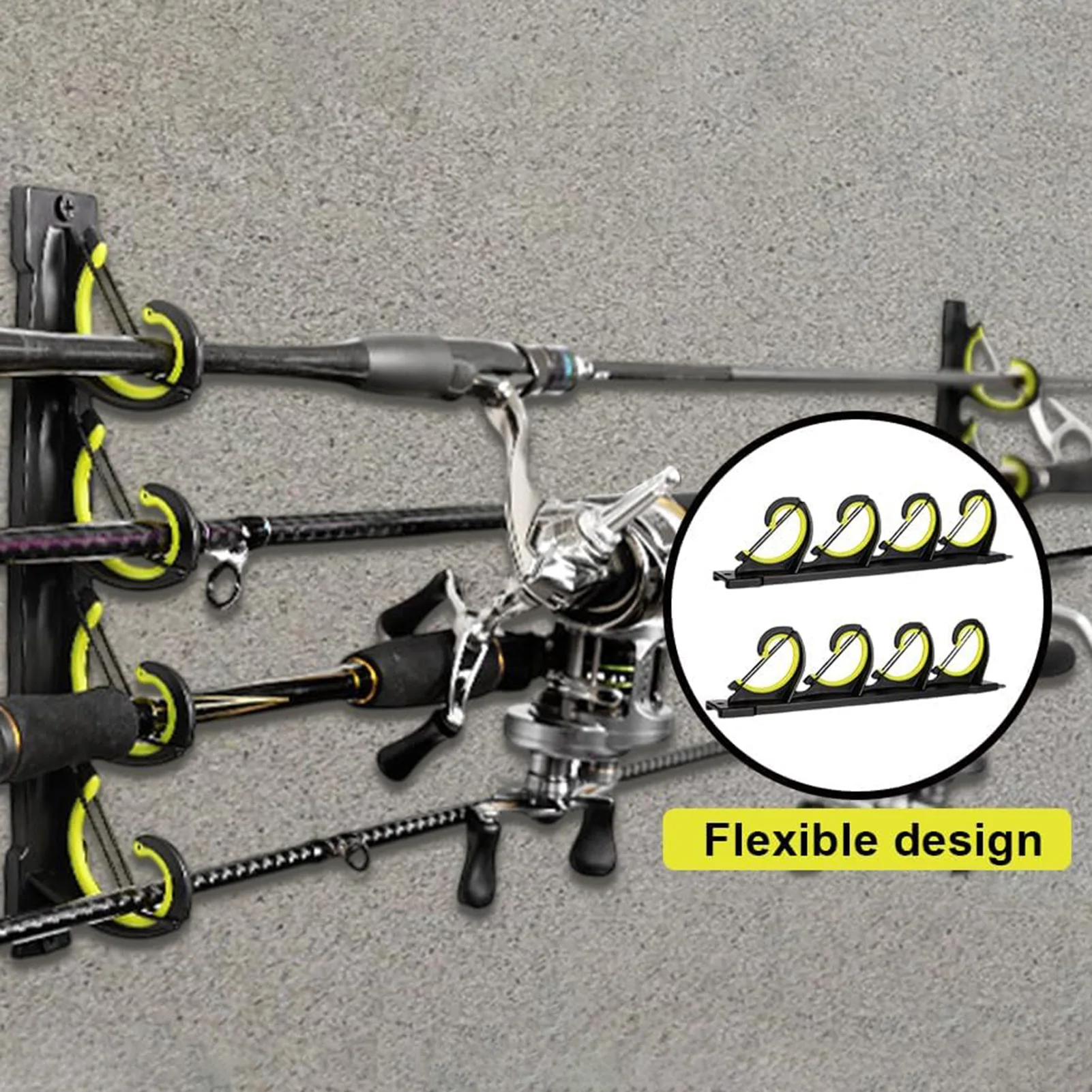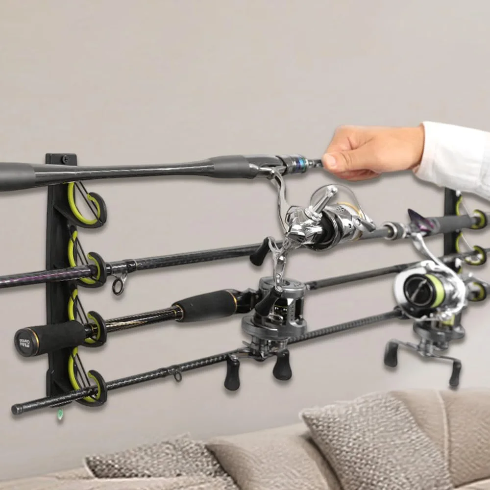 Pelo seu formato, este conjunto adapta-se bem a diferentes tipos de canas e permite criar uma zona de arrumação mais limpa e acessível. As áreas de contacto com revestimento protector ajudam a segurar melhor o material e tornam este suporte interessante para quem quer guardar vários conjuntos prontos a usar, sem ocupar espaço no chão.
